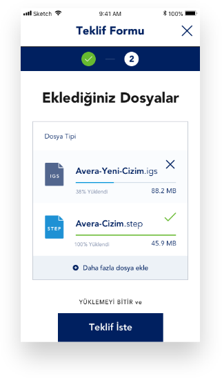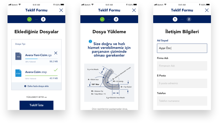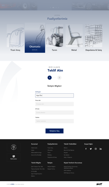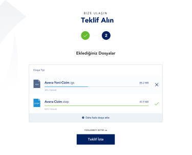 Avera için proje süreç yönetimlerini kolaylaştırmak adına, müşterilerinin web üzerinden kişisel bilgileriyle birlikte proje dosylarını kolaylıkla yükleyebildikleri bir form sistemi oluşturduk.