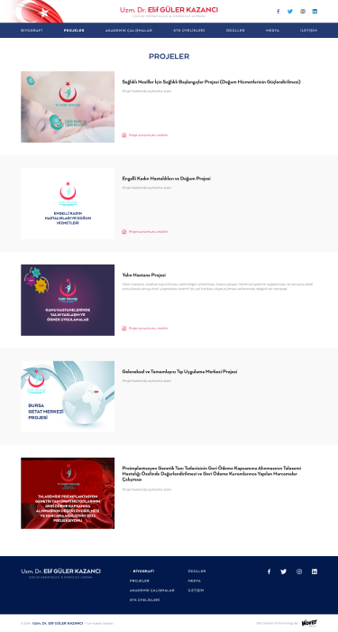 Arayüz Tasarımı, Web YazılımUzm. Dr. Elif GÜLER KAZANCI için farklı kullanıcı tiplerine göre farklı deneyimler sağlayan bir web sitesi tasarladık. Yeni web sitesi içerisinde biyografi, projeler, akademik çalışmalar, stk üyelikleri, ödüller, fotoğraflar ve videolar kolaylıkla ulaşılabilecek şekilde konumlandırılmıştır.www.elifgulerkazanci.com