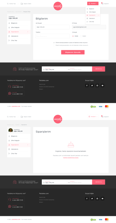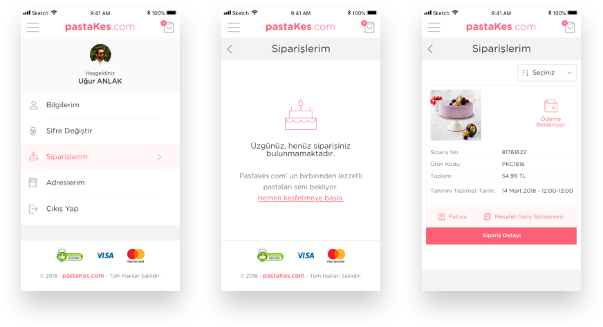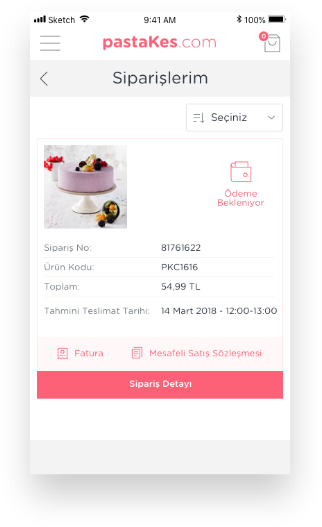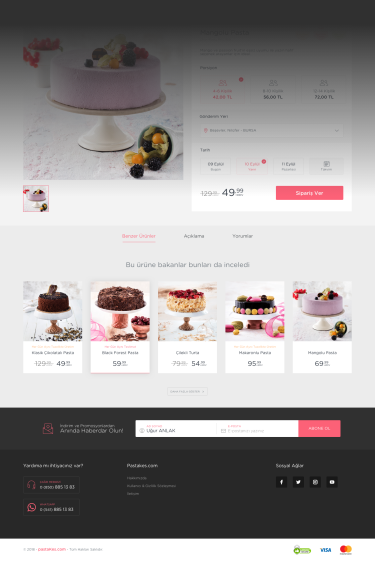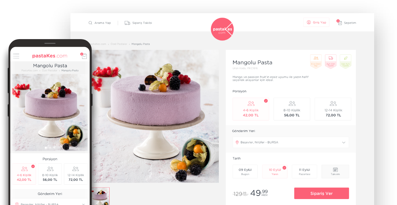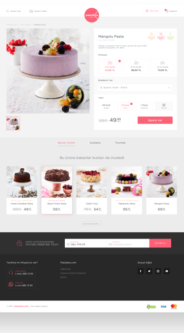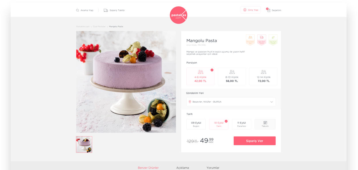PastaKes.com’ un ürün detay sayfasını tasarlarken bir pasta sever için tüm detayları göz önünde bulundurup, aynı zamanda da pastaKes ekibi için salt siparişi tek bir noktadan göndermiş olduk.