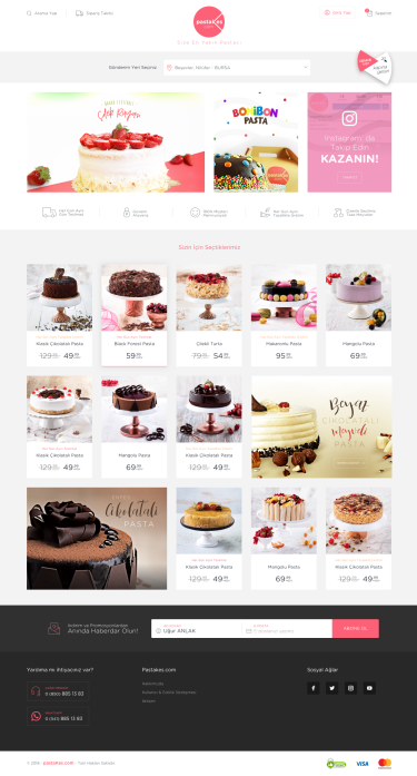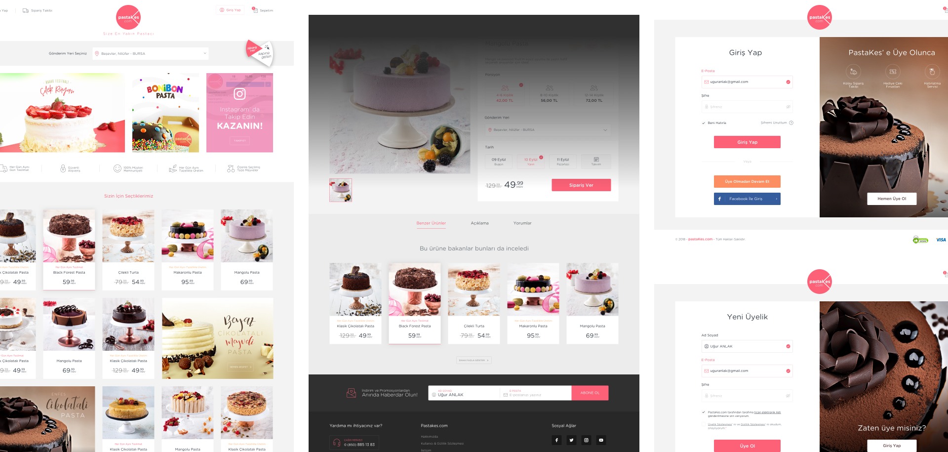 Arayüz TasarımıPastaKes.com için pasta sever dostu bir e-ticaret sitesi tasarladık. Anasayfa’ da lokasyona göre pastataların çeşitlik gösterdiği pasta vitrini, pastawww.pastakes.com
